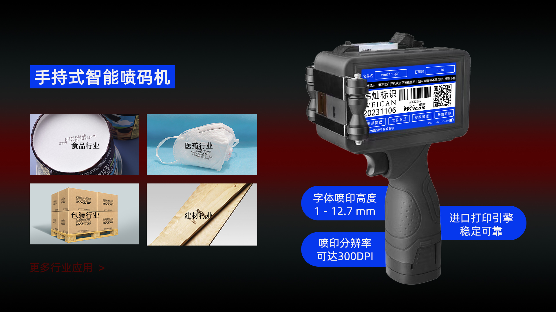 成都偉燦標(biāo)識(shí)技術(shù)有限公司,公司一直致力于噴碼機(jī)行業(yè),是一家專(zhuān)注于油墨、激光噴碼打標(biāo)機(jī)的廠(chǎng)家,為您提供各行各業(yè)噴碼解決方案。噴碼機(jī)價(jià)格優(yōu)惠,承諾終生提供售后服務(wù)!公司秉承敬業(yè)、創(chuàng)新的發(fā)展理念,以堅(jiān)持客戶(hù)為本、信用為先的服務(wù)準(zhǔn)則,以自身擅長(zhǎng)的優(yōu)勢(shì),用心解決您的需求,以?xún)?yōu)質(zhì)的產(chǎn)品、技術(shù)為您提供滿(mǎn)意的服務(wù)。公司一直追求專(zhuān)業(yè)化發(fā)展道路,始終秉持;質(zhì)量保證,客戶(hù)至上,開(kāi)拓創(chuàng)新求發(fā)展的運(yùn)營(yíng)方針,通過(guò)持續(xù)不斷改進(jìn),掌握穩(wěn)定的技術(shù),精益求精的施工水平和產(chǎn)品質(zhì)量控制,用我們的專(zhuān)業(yè)化服務(wù)幫助客戶(hù)創(chuàng)造高價(jià)值。我們堅(jiān)信在充滿(mǎn)機(jī)遇和挑戰(zhàn)的二十一世紀(jì)中,公司將通過(guò)不懈的努力,以創(chuàng)新的理念及誠(chéng)摯的服務(wù)為廣大客戶(hù)營(yíng)造科技化、信...